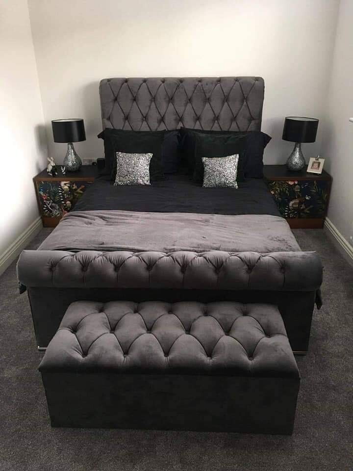 King Size Sleigh Bed With 10 Inch Mattress Chesterfield Desigm Grey